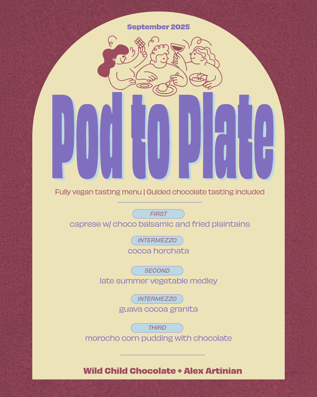 Indulge in delectable dishes crafted by local chef Alex Artinian (formerly of Lehrhaus), incorporating our cacao/chocolate into every course. A unique and unforgettable dining experience you won't want to miss!